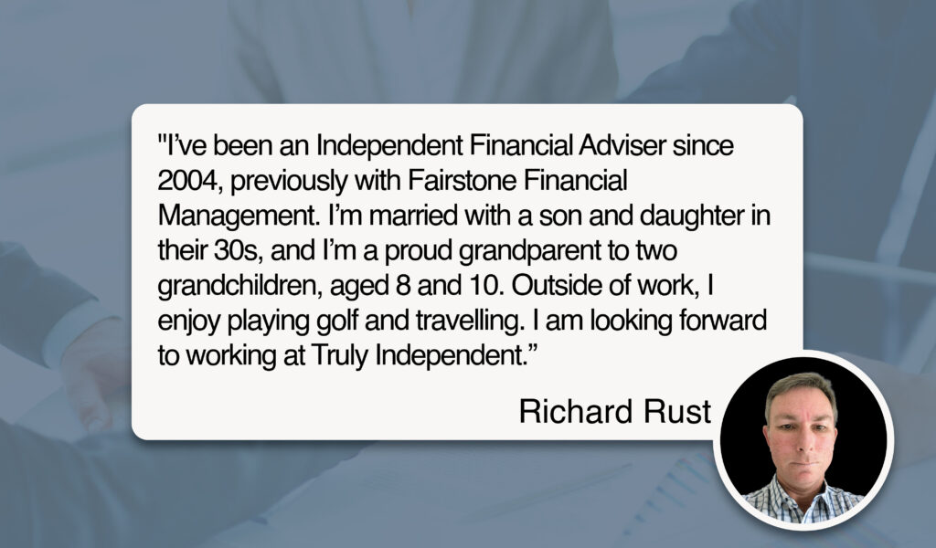 We’re pleased to welcome Richard Rust, our newest self-employed financial adviser, to the Truly Independent team.